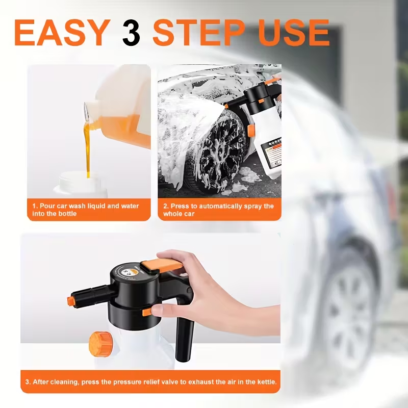 Presión eléctrica automática – Pulveriza espuma o agua a presión sin esfuerzo.